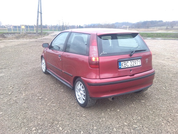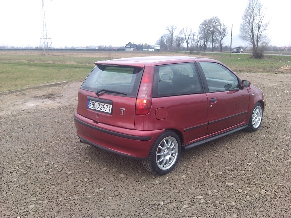 Sprzedam Fiat Punto Gt 1.4 Turbo o oznaczeniu silnika 176A4000 i mocy 136KM, to najmocniejsza wersja Punta jaka wychodziła seryjnie. Samochód posiadam od 4 lat, użytkowany sporadycznie. Po zakupie w samochodzie zostało zrobione m.in. ;Kompletna blacharka + malowanie+ konserwacja , wymiana zawieszenia( amortyzatory bilstein b4 + sprężyny mts technic), rozebranie i wygłuszenie środka itp. W ostatnim czasie wymieniłem kompletne sprzęgło (tarcza, docisk, łożysko), przeglądnięta została przy okazji skrzynia biegów za sprawą ciężko wchodzącej 2jki. Z przodu nowe tarcze i klocki, z tyłu klocki i linki ręcznego i wszystkie przewody metalowe wymienione na miedziane. Turbo zostało wyciągnięte i wymieniona strona "ciepła" ponieważ pękło pod zaworem westgate. Kropek doinwestowany, szybki (zmieniłem doładowanie z 0.8bar na 1.0bar za sprawą MBC, duży intercooler i przelotowy wydech zakończony kwasówką, blow off hks 3 stage, turbo timer hks). Samochód na polskich drogach dość rzadki w tej wersji, a w tym stanie ciężki do kupienia. Sprzedaje na tych kołach co na zdjęciach 15' + dodaje zimówki na oryginalnych 14stkach z Gt'ka. Więcej informacji pod nr. tel: 506-602-604