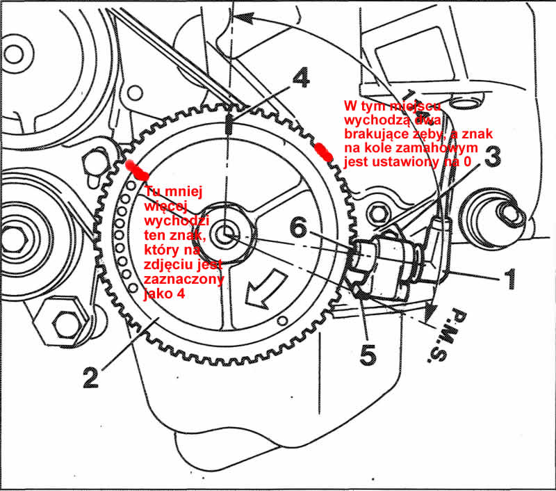 Fotki przedstawiaja jak jest, kolo zamachowe na znaku ustawione na zero na skrzyni.