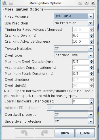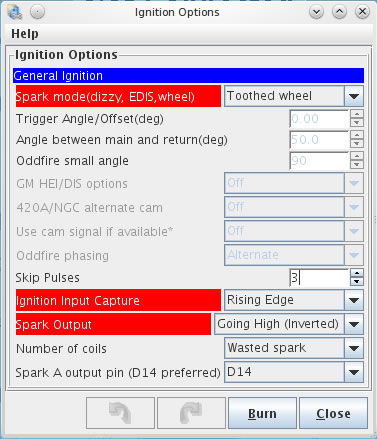 skip pulse w ignition options dotyczy startu silnika. Ustaw to na 3 i sproboj odpalic.